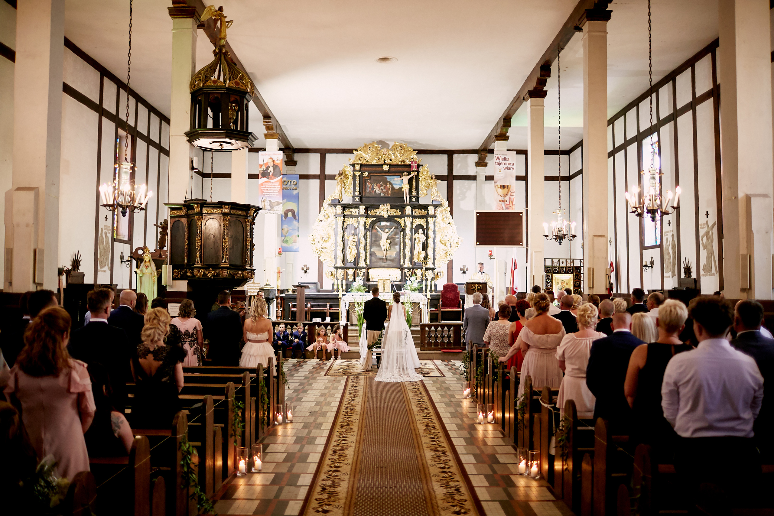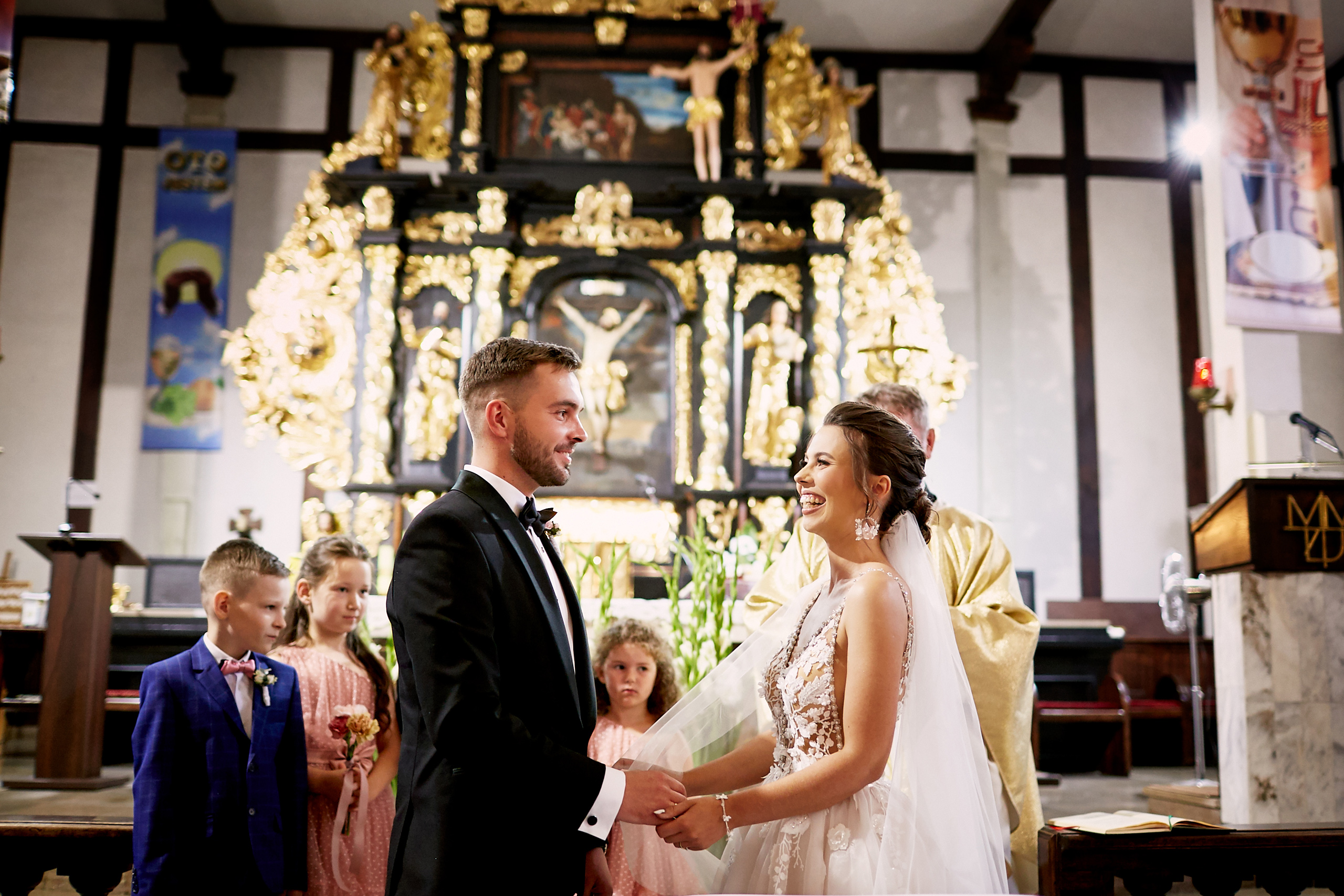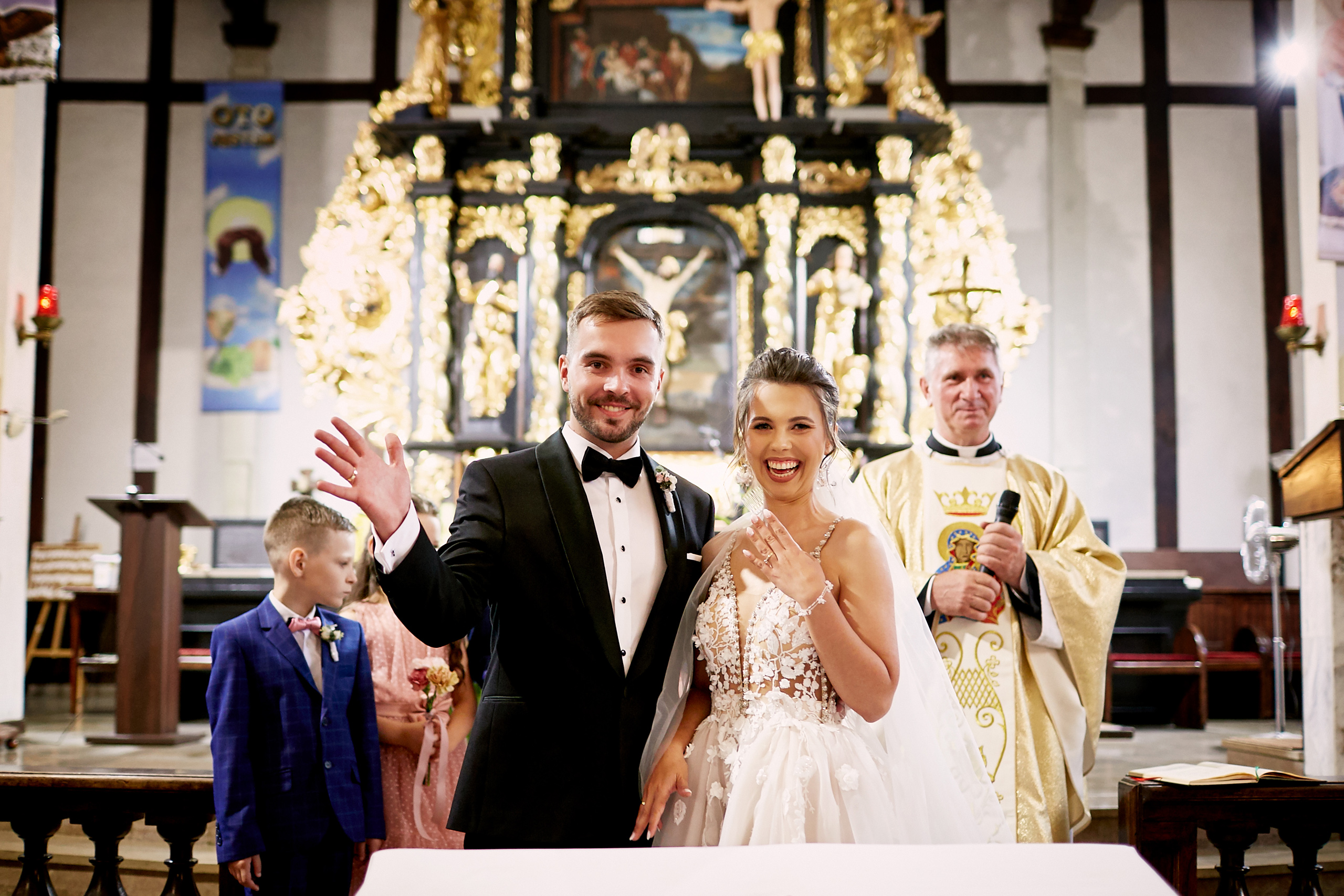 Ich ślub odbył się w pięknym Kościele św. Jana Chrzciciela w Piszu. W ciepłej, uroczystej atmosferze, otoczeni rodziną i najbliższymi, wypowiedzieli słowa, które na zawsze połączyły ich serca. Były łzy wzruszenia, niewymuszone uśmiechy, a przede wszystkim — prawdziwa miłość, którą czuć było w każdym geście i spojrzeniu.
