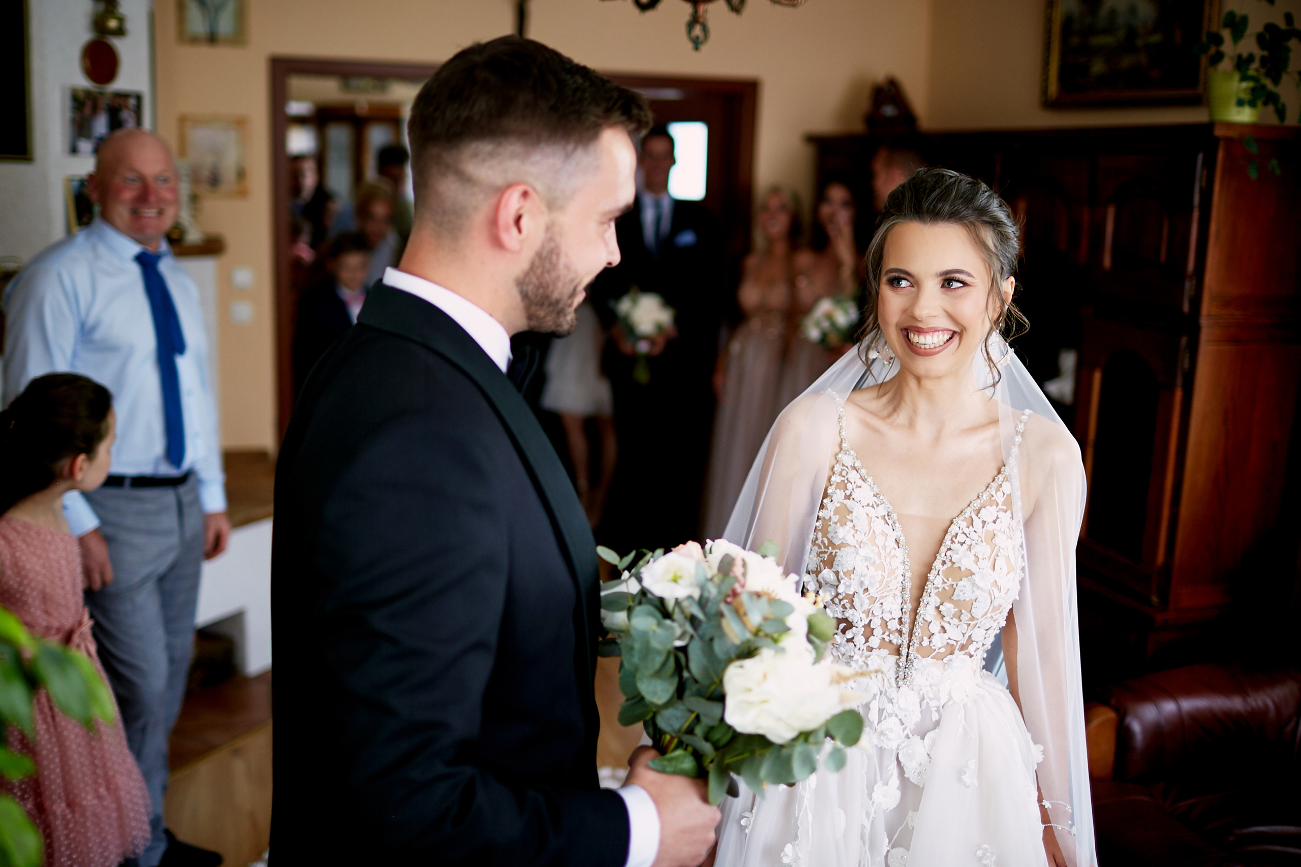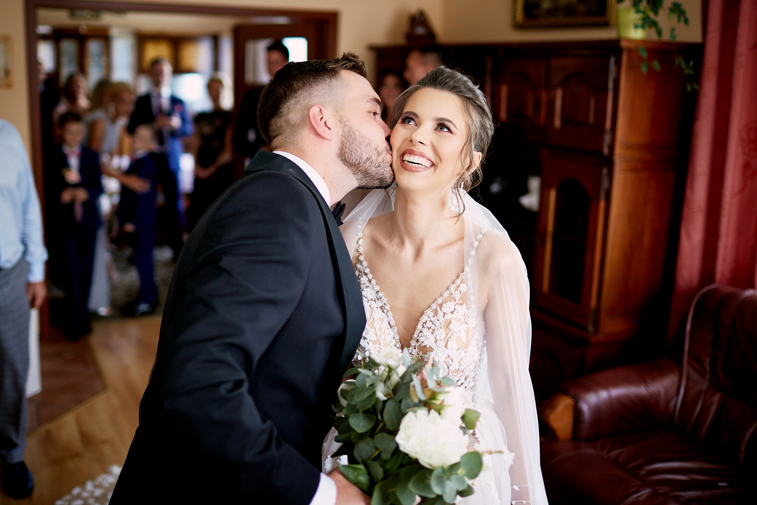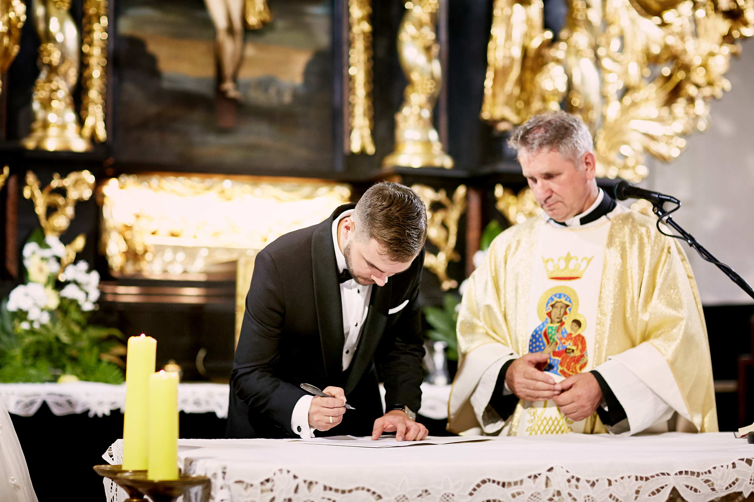 Ich ślub odbył się w pięknym Kościele św. Jana Chrzciciela w Piszu. W ciepłej, uroczystej atmosferze, otoczeni rodziną i najbliższymi, wypowiedzieli słowa, które na zawsze połączyły ich serca. Były łzy wzruszenia, niewymuszone uśmiechy, a przede wszystkim — prawdziwa miłość, którą czuć było w każdym geście i spojrzeniu.